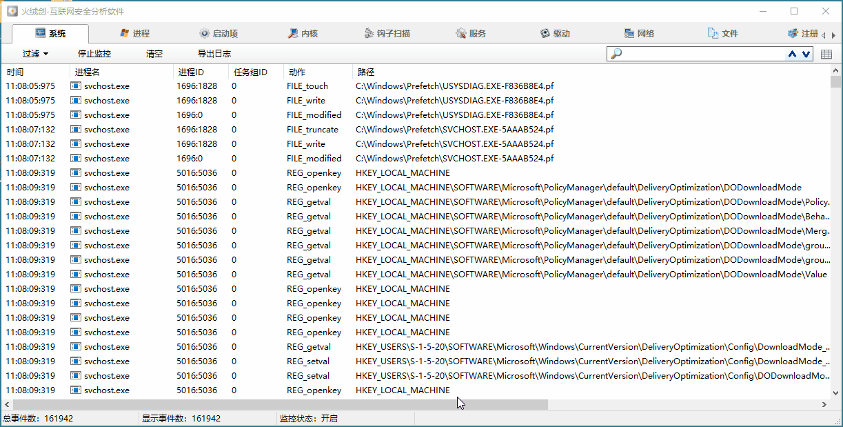 火绒剑-互联网安全分析软件(HRSword),它是火绒安全软件里的高级工具,适用Windows系统的安全分析辅助工具,具有系统动作监控、文件管理、进程管理、启动项管理、注册表管理、服务管理、驱动模块、网络管理、系统内核查看、钩子扫描等功能。用它可以查看各类系统信息,通过监控分析系统各种行为。