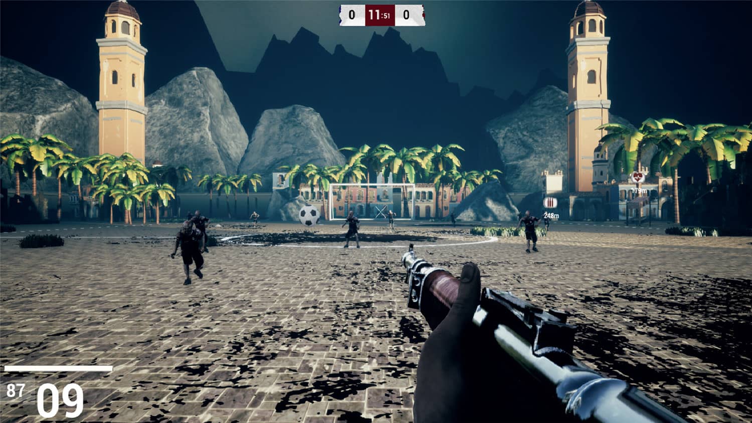 《血腥目标(Have a Bloody Goal)》是一款有趣的第一人称僵尸游戏。游戏让你对抗少量的僵尸、成群的僵尸、巨人,或者给你无限的时间,让你尽可能多地进球,不要输给你的对手,而你的对手也在努力对你进球。