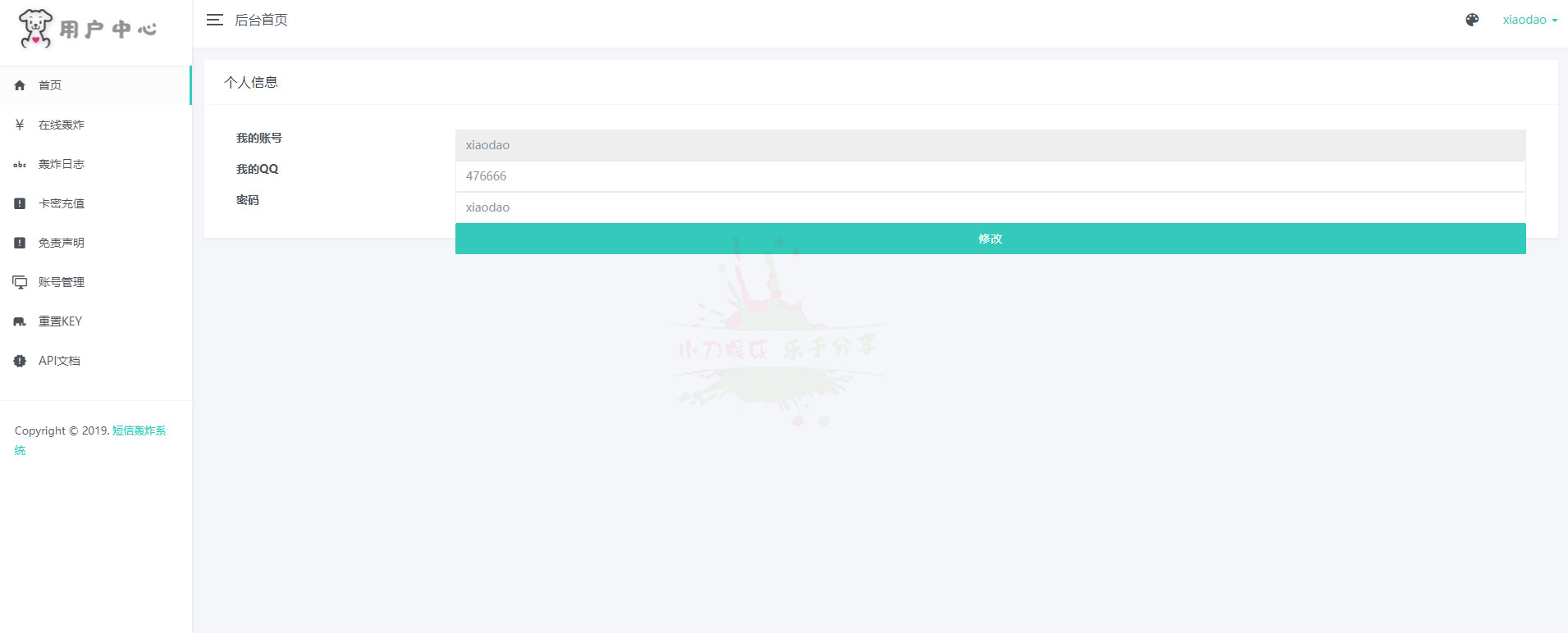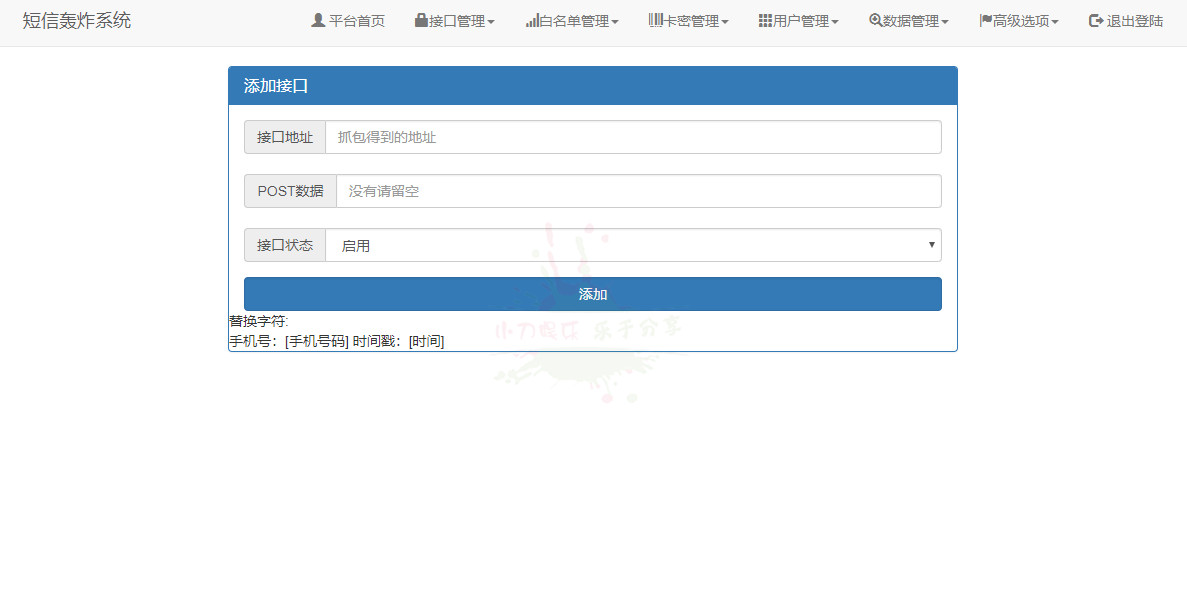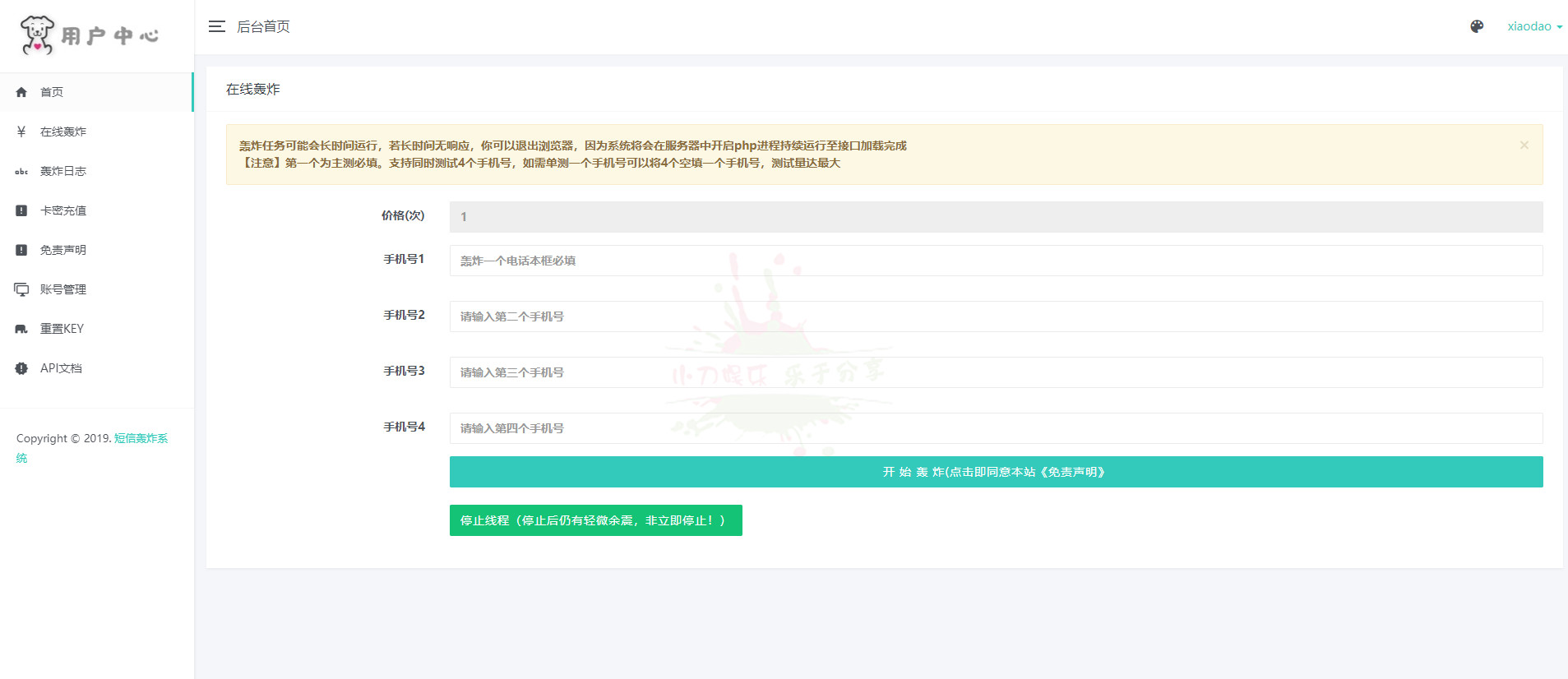 Ps: 短信对接接口请自行寻找,本程序仅供测试,请勿用于非法用途。
